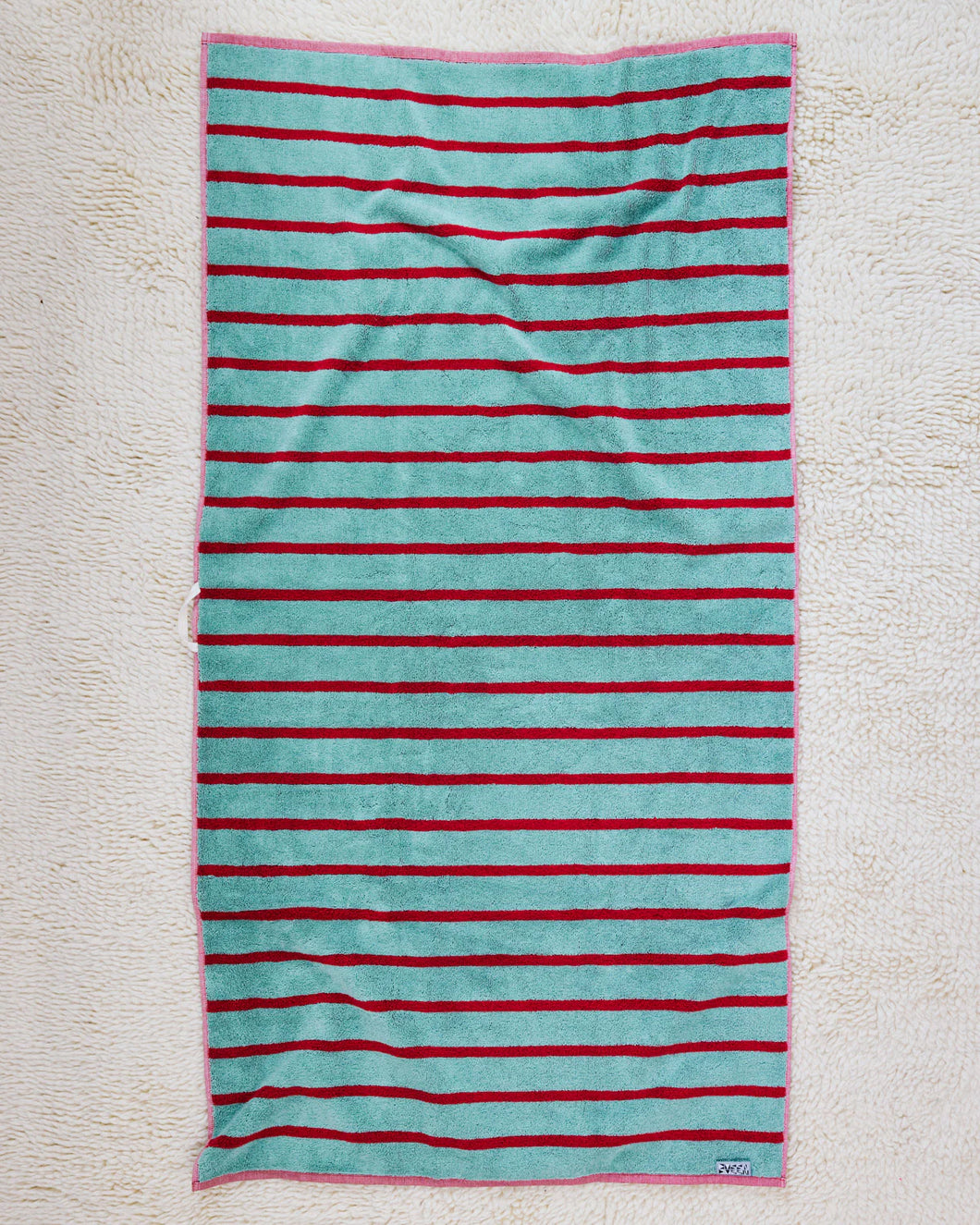 100% cotton terry. 700 GSM (washcloth 600GSM). Made in Portugal. Comes with hanging loop. Bath towel: 30"x56".