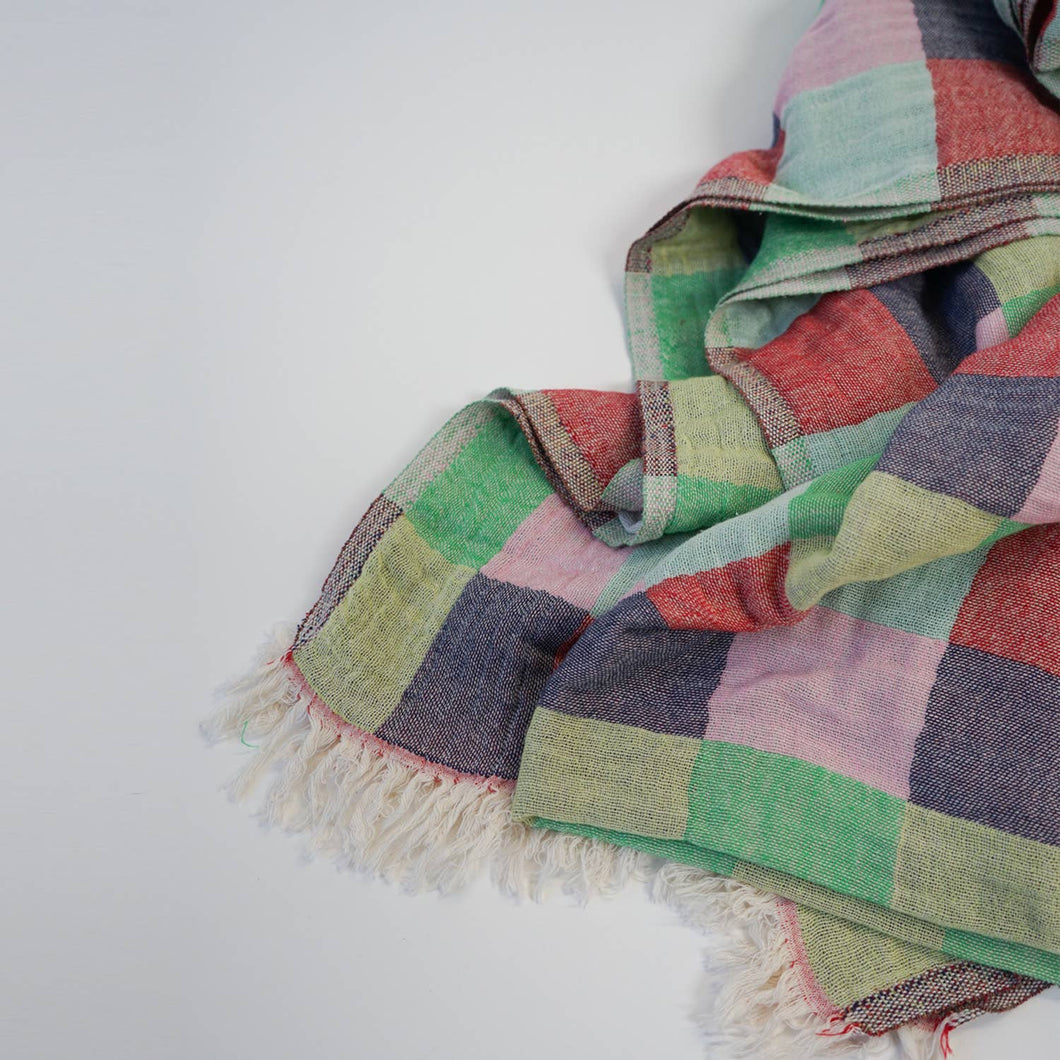 STATE The Label has your winter snuggles covered. We worked with their weaving mill in Turkey to create the throw of their dreams. It's massive, insanely soft, and their favorite colors! Made from 100% cotton, this double layer woven blanket will be a staple in your household for years. 92" x 92".