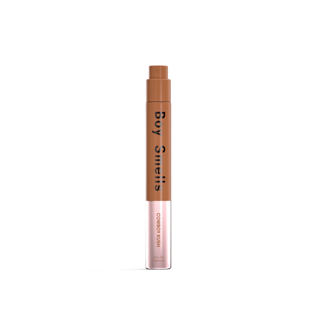 Cowboy Kush kicks off with warm hazelnut and soft white leather, matures into cannabis flower and worn suede, and then settles into smooth tonka and patchouli. Sweet, smoky and slightly wild. Think rodeo rebel meets downtown after-hours.