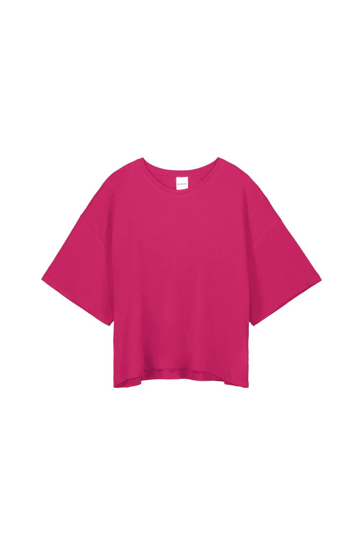 The Light Boxy Tee offers a relaxed fit with a drop shoulder silhouette. It features a classic crew neckline and is detailed with our signature twisted side seams. Crafted from a lightweight organic cotton jersey in a vibrant Magenta.