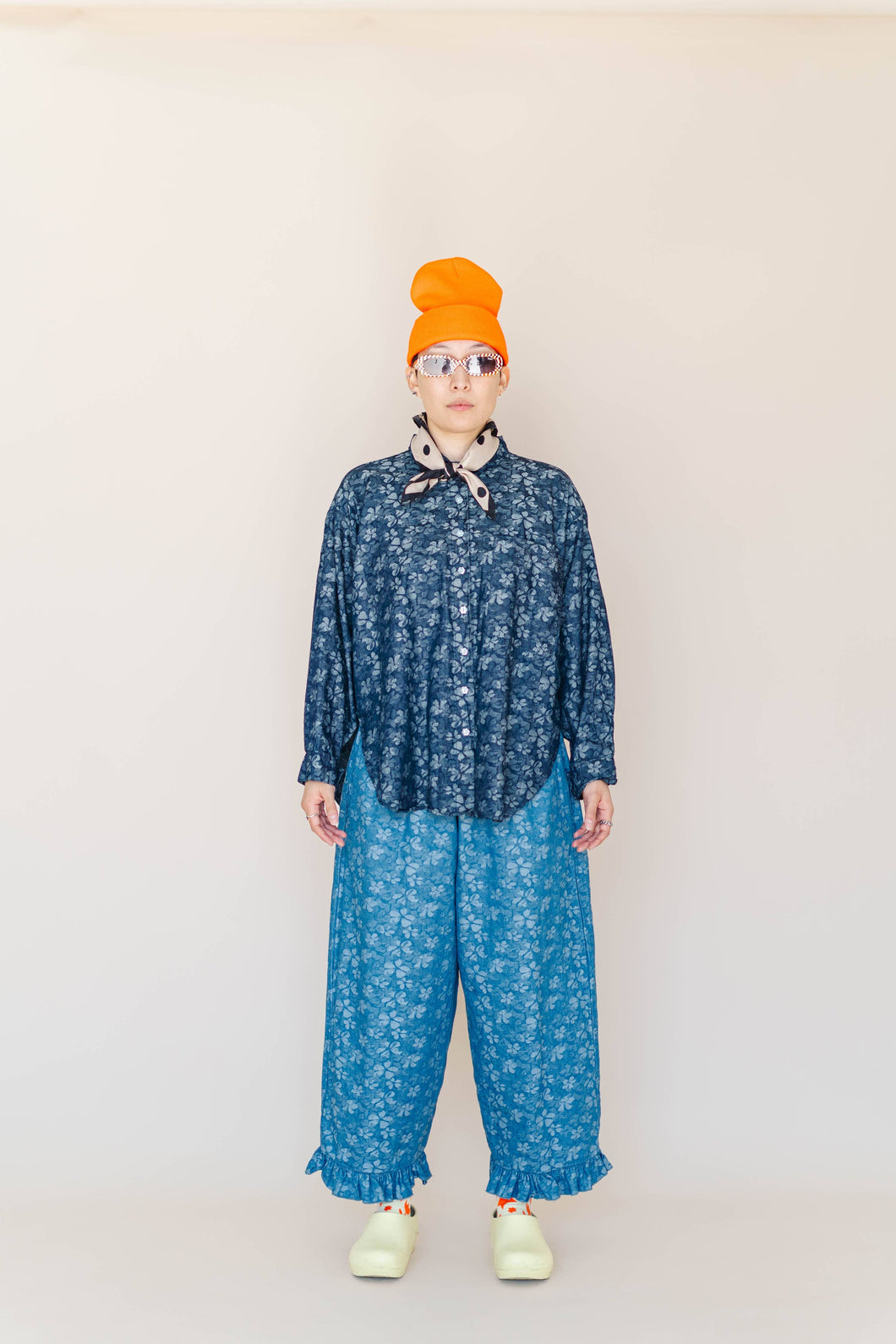 Meet your new favorite layering piece! Our Soft Volume Long Sleeve Top in Dark Floral Chambray blends cozy comfort with elevated, vintage-inspired style. Crafted from deadstock floral chambray, each top features unique, moody blooms with textured depth and soft movement that shifts beautifully in the light.
