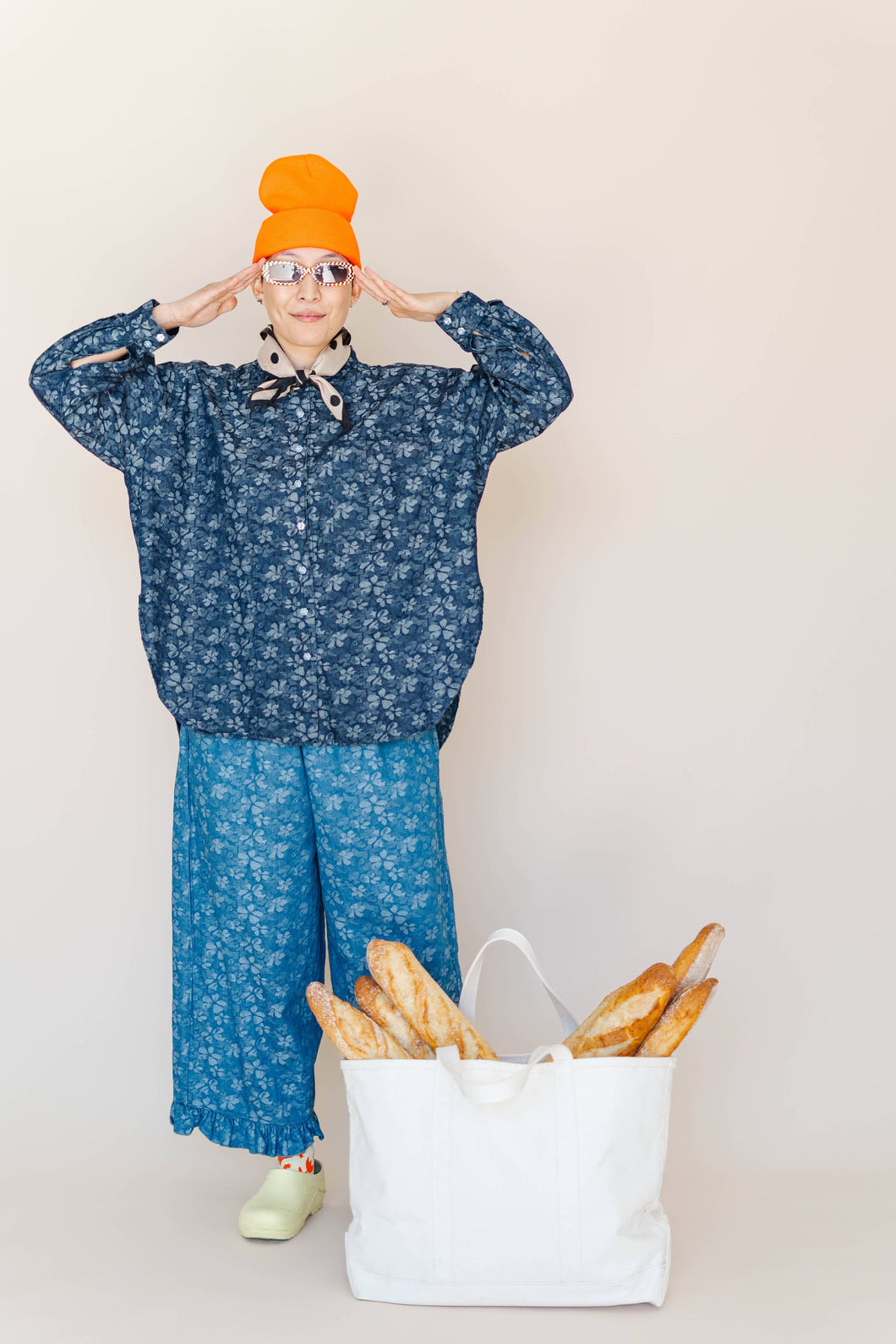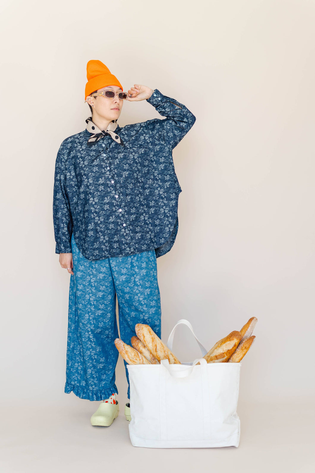 Why you’ll love it: • Versatile styling: Button up, tuck in, or layer open for effortless looks. • Relaxed fit: Easy through the shoulders and body with a curved hi-low hem for flattering drape. • Statement sleeves: Billowy, lightweight volume adds shape without bulk. • Sustainable fabric: 100% pre-washed, pre-shrunk cotton chambray for easy care and no surprises in the wash. • One-of-a-kind patterning: Each piece highlights the natural variation of the fabric.