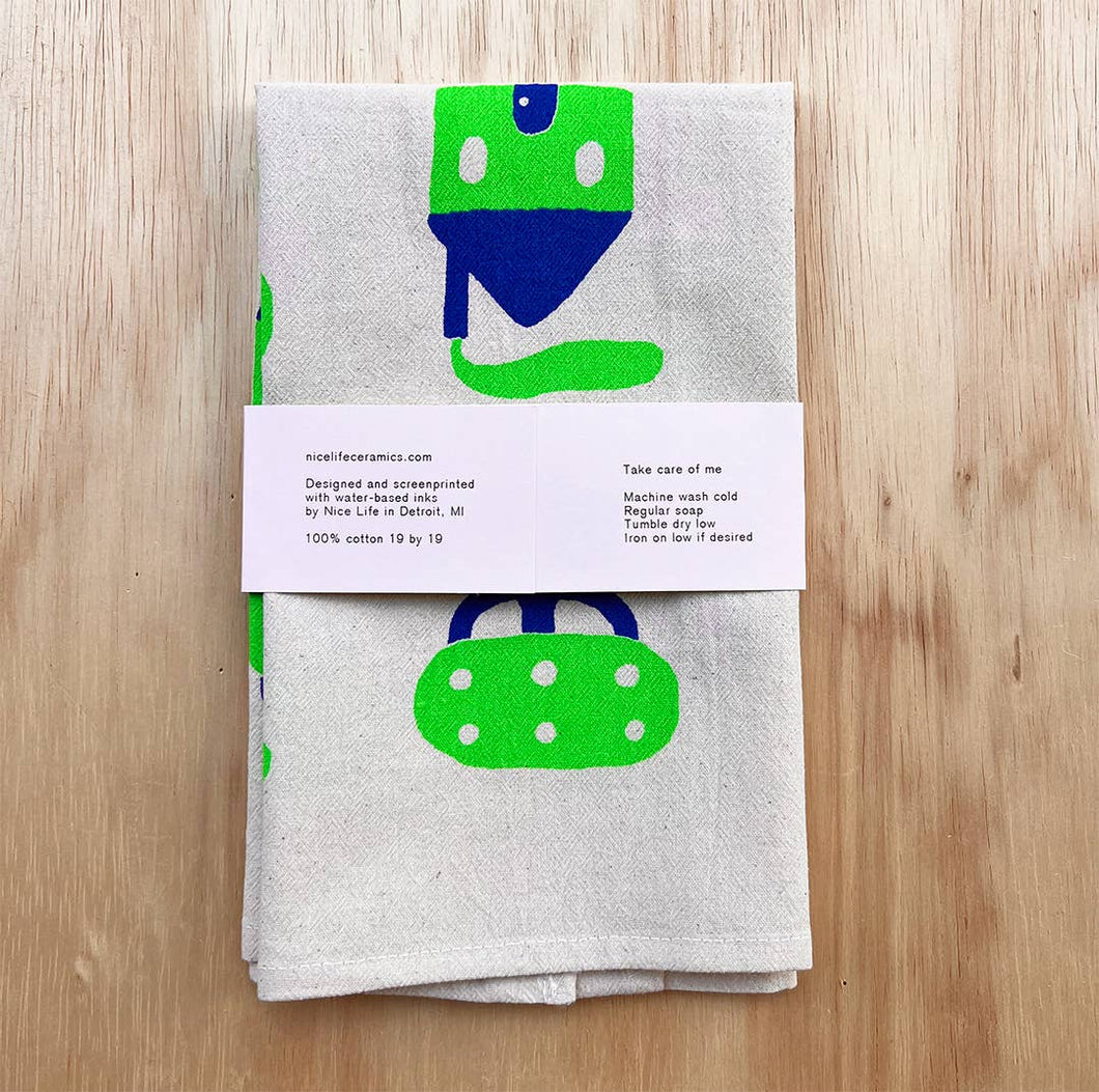 Welcome to the whimsical world of Nice Life. Our House and Tree Tea Towel is an essential addition to your kitchen. Crafted in our Detroit-based artist studio, each piece is screen printed and hand-cured, embodying our commitment to small batch production. Our meticulous process ensures every towel meets our standards. Embrace our sustainable and eco-friendly approach to home living. Brighten your kitchen experience with our unique, playful design. 100% natural cotton flour sack tea towel 19” by 19” Screenprinted with water based ink Each towel is individually screen printed and cured in my studio by hand - therefore please allow slight variance in detail as this is meant to enhance the beauty of a hand printed item by the artist.