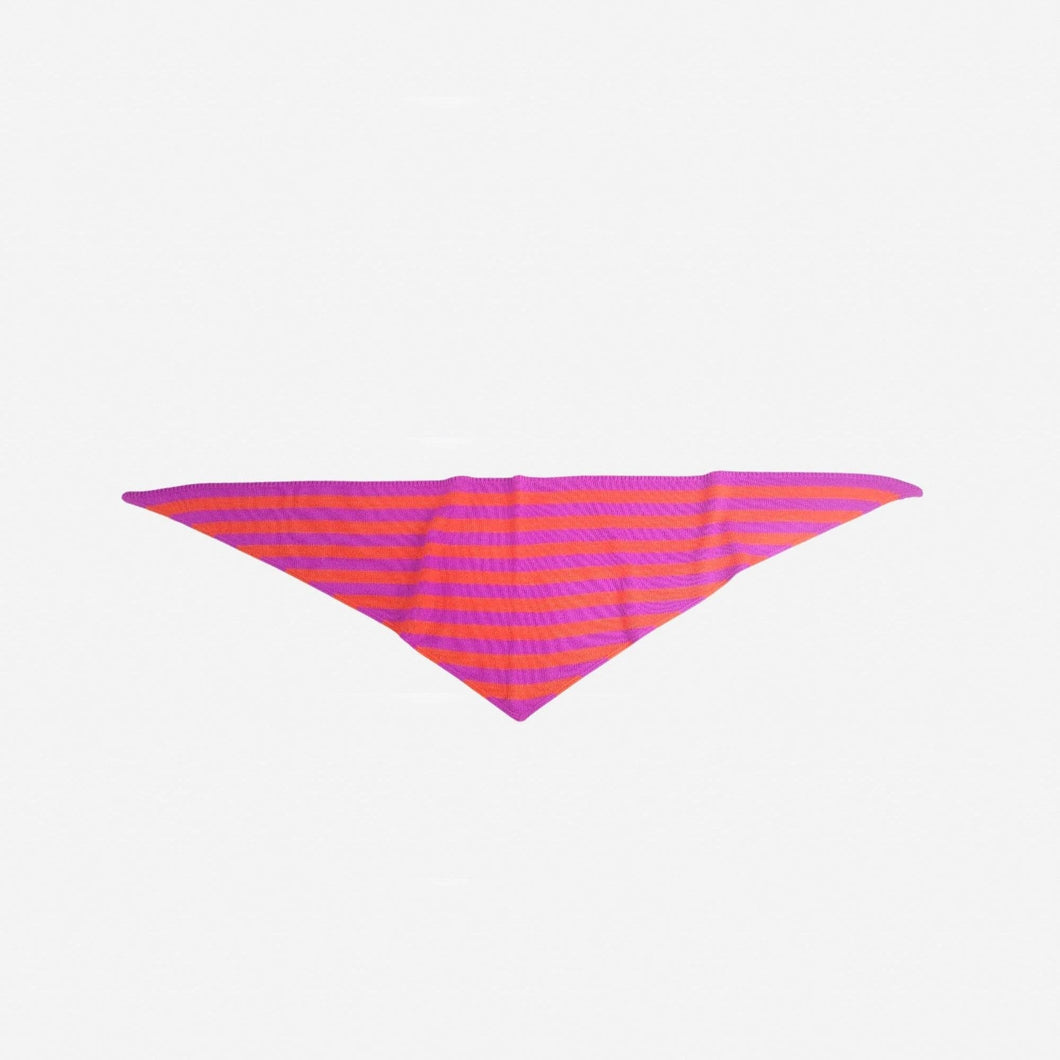 Soft, versatile triangle scarf with two-tone simple striping. Wear it knotted or tied as a neckerchief, shawl, or bandana. Perfect for transitional outfits, indoors and out. Knit with hypoallergenic yarn. Details 100% Soft Acrylic Machine wash cold gentle cycle, dry flat 15"W x 50"L